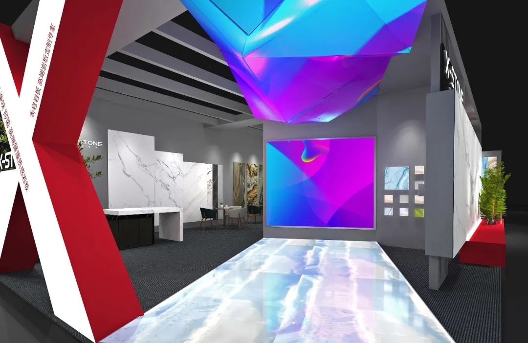秀岩岩板,首秀厦门石材展,”X”造型,用红/白色增加整体分量感,用线性灯光做出炫酷的氛围;在大牌云集的厦门展上,秀岩岩板更加出众,一枝独秀,彰显秀岩之美。