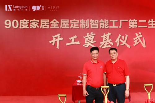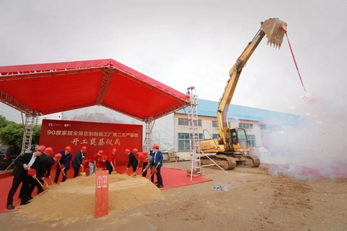 此次90度家居全屋定制智能工厂第二生产基地开工奠基仪式的圆满举行,意味着开启了90度家居腾飞的新起点,不仅扩展了90度家居的生产规模,为品牌的快速发展增添长足的后劲、提供更强有力的支撑;更是对90度家居“瓷砖+橱柜+衣柜,一起配”独创模式的进一步打造和升华,有力打造品牌实力标签,增强品牌的行业影响力和竞争力,助推90度家居走上发展壮大的“快车道”。