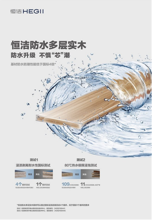 众所周知,卫浴空间水汽重,很容易导致浴室柜的开裂、变形,缩短产品使用寿命,还会滋生霉菌,影响卫生和健康,成为消费者心中的一大痛点。对此,恒洁通过技术创新寻找解决方案,研发出“恒洁防水多层实木”,这种木质材料不易开裂变形,可通过《浸渍剥离耐水性国际测试》的4个循环测试,是国标要求的4倍;在《80℃热水极限浸泡测试》中浸泡109小时无分层翘曲,验证了“恒洁防水多层实木”的防水防潮能力,保证了产品的使用寿命,成为“懂行”消费者的首选。