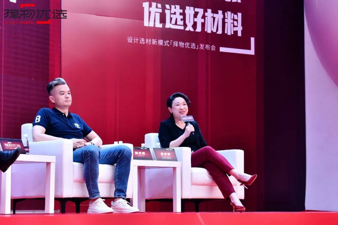 中国陶瓷总部总经理助理黄震宇先生作为选材中心的发起人之一,7年间陪着选材中心一直成长。在这创势启新之际,黄总助向现场来宾详细介绍了「择物优选」的解决方案及服务流程和标准。「择物优选」依托中国陶瓷总部·选材中心项目优势,汇聚400+高端品牌,10000+设计师,建立双向赋能的服务平台。为设计师打造触手可得的个性化材料库,为品牌提供倾听设计师需求的精细渠道,为品牌与设计师搭建高效的交流、合作平台。在现场的领导、来宾的共同见证下,「择物优选」首发仪式举行,宣告设计选材新模式——「择物优选」正式启动。围绕设计师选材痛点、品牌方打通设计师渠道的难点、中国陶瓷总部平台针对双方痛、难点的探索以及更多规划等问题,在《设计选材·面对面》环节,担任对话主持的和智有信文化传播创始人 绝对设计首席运营官张志有先生,与佛山市陶瓷行业协会秘书长尹虹、设计代表中国建筑学会室内设计分会全国理事、佛山环境设计协会副会长、瑞坤国际一正方良行设计总设计师徐庆良先生、品牌方代表芒果瓷砖董事总经理 陶举鹏先生、佛山中国陶瓷城集团总裁助理、中国(佛山)陶瓷总部总经理、中国(淄博)陶瓷总部总经理汤洁明女士开展了深入对话。