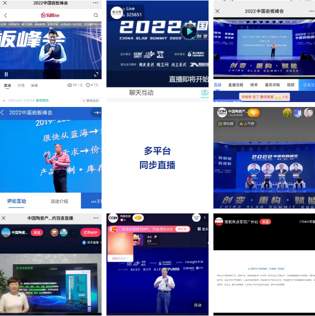 中国岩板峰会首次采用线上峰会的形式进行,进一步突破地域和时间的局限,让更多无法到达峰会现场的岩板人也加入到这场岩板领域年度思想盛宴。作为岩板行业风向标,2022中国岩板(线上)峰会得到460万全网观看量,行业反响热烈。腾讯家居、新浪家居、搜狐焦点家居、中国佛山陶博会、陶卫网为本次峰会提供了直播支持。