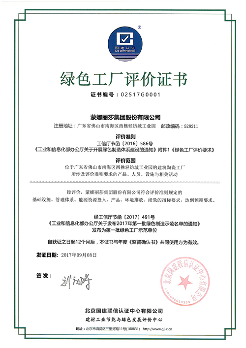 正是向着更为绿色的生态迸发,也是向着更为安全健康舒适的人居环境努力的结果,蒙娜丽莎2017年被工信部列入首批“绿色工厂”、并连续六年获评佛山“环保诚信企业”,首批“绿色建材评价标识三星级”企业,也是入选行业首批“中国绿色产品”认证企业,2019年至2020年连续两年当选 “低碳榜样企业”,2021年获得陶瓷薄板“产品碳足迹”证书,并成为碳足迹和碳标签领跑典型企业。