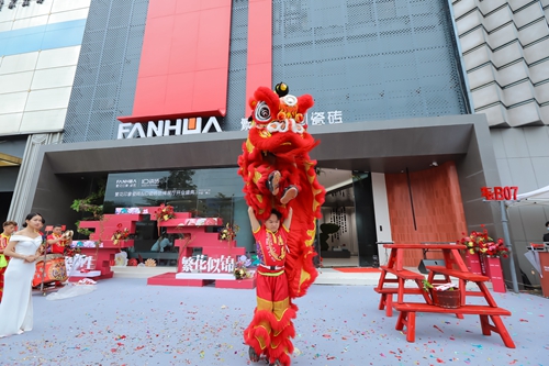 开业当天,现场鼓声雷动,高朋满座,客聚如潮;开业当天总经理伍尚志,ID品牌总经理申志远,繁花品牌总经理焦秋荣、严剑城,陶瓷总部总经理汤洁明女士,佛山陶瓷行业协会秘书长尹虹博士等领导嘉宾以及行业媒体代表共同出席了本次开业庆典。