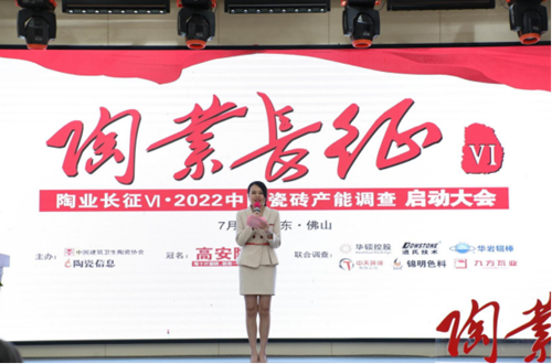 7月5日下午,“陶业长征VI·2022中国瓷砖产能调查”活动在广东佛山正式启动。本次活动由“高安陶瓷”冠名,并得到了华硕控股集团、道氏技术、华岩辊棒、中天环保、锦明色料、九方瓦业等企业的鼎力支持。