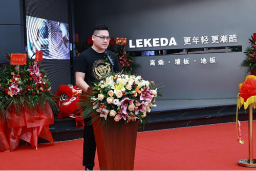 乐基达公司总经理刘总在致词中说,LEKEDA品牌一直以推动绿色健康生活,推动生活快装,助力人类可持续发展作为企业使命, 是一个年轻派, 是一个充满活力、创造力的品牌。LEKEDA品牌致力于走绿色环保健康产品之路,我们的石晶地板&碳晶墙板产品,是基于瓷砖和墙地板材料原有的属性,研发并升华的一种新型环保产品,它相比瓷砖、岩板、木地板、集成墙板更加节能环保,无醛无味,防水防潮,便捷快装,应用范围广泛,相比其它材料装修成本能节约70%,可以做到24小时即装即入住, 能够大大缩短装修工期。