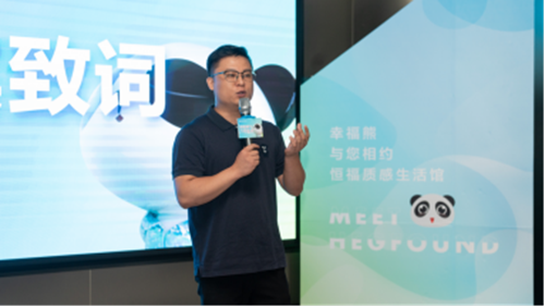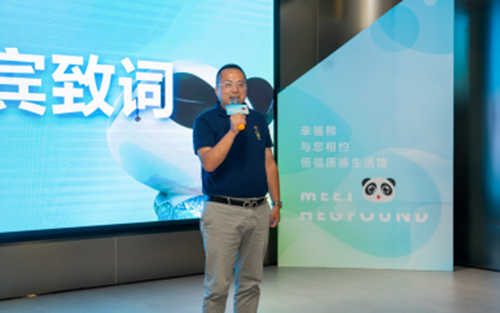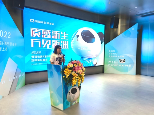 恒福瓷砖市场总监李小龙对新品的定义进行一个解读。他指出由于当今消费群体的改变,以往的爆款产品已然不再适合当今社会潮流的趋势。因此我们时刻研究如何满足新一代的消费所需,从而发现利用先进的技术把自然的奇观异景还原至产品上,让用户在家居空间中得以感受更多自然之美这个方向,是未来市场发展趋势。因此我们推出了质感砖系列产品,并诞生全新恒福IP——幸福熊。