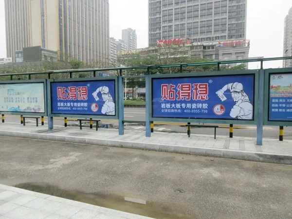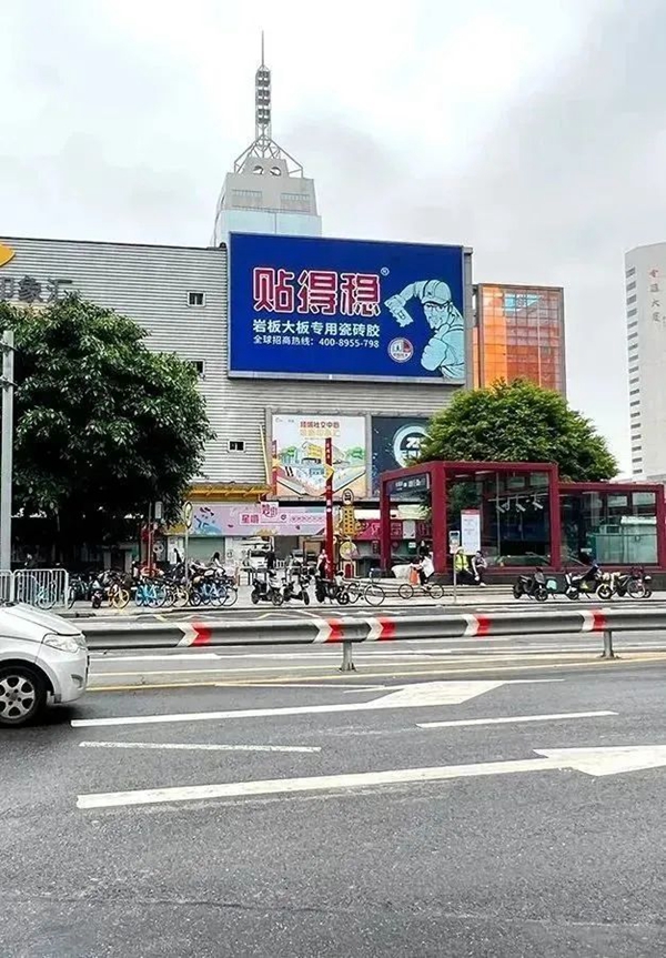 有好的产品才能配上好的宣发,作为全球岩板大板瓷砖胶创新者,也是中国瓷砖胶十大品牌之一,贴得稳致力于为消费者提供高品质的产品和服务,也极其重视品牌形象的传播。此次在商场、高炮、公交站广告的投放,便是贴得稳品牌提升的重要一环,将“让天下岩板大板瓷砖都能贴得稳”的使命传达到千家万户,为品牌发声,为经销商赋能!