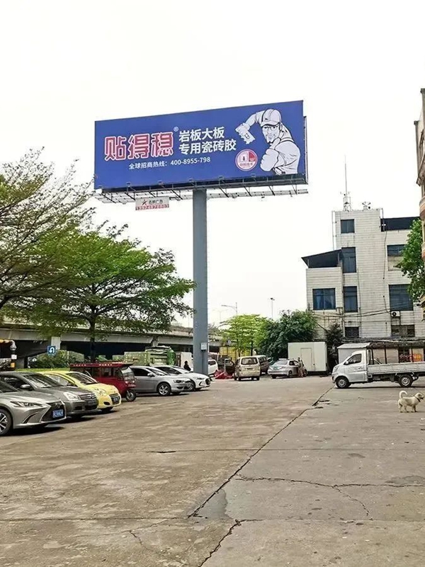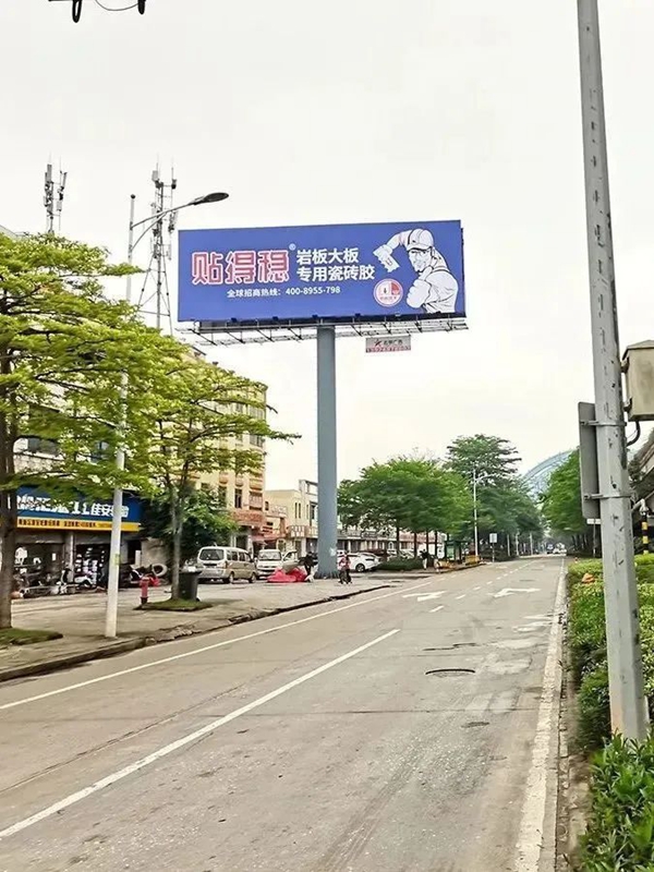 此外,贴得稳品牌广告还抢占了佛山南庄各大重要交通钮枢的中心广告位,南庄是佛山陶瓷产业重镇,也是中国陶瓷品牌最聚集的地方之一。利用传播面广、人流量大的特点,开展品牌推广活动,进一步提高佛山本地以及来佛山考察的商业精英对贴得稳品牌的认知度。