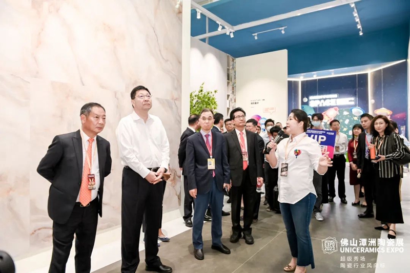 佛山市长白涛亲临展会现场,参观了冠珠、宏宇、萨米特、马可波罗、蒙娜丽莎、诺贝尔、顺辉、大将军、鹰牌生活、越南VCG等展馆,对参展企业产品、设计及空间应用展示做出了高度评价。