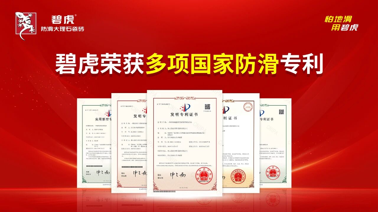 其次,看有没有国家权威机构认证证书!碧虎防滑大理石瓷砖荣获五项国家防滑专利,经国家工信部鉴定,防滑性能达到国际先进水平。