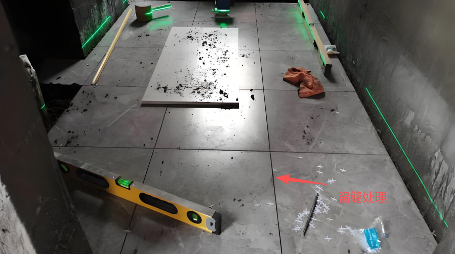 靠近墙面、门框的位置,需预留5-8mm的伸缩缝,用压条或美缝剂填充,给瓷砖收缩留出空间。阳角部位需做45°倒角拼接或使用专用护角条,防止热胀冷缩导致崩边。铺贴后 24 小时内避免踩踏,让水泥浆充分凝固,减少外力导致的应力损伤。