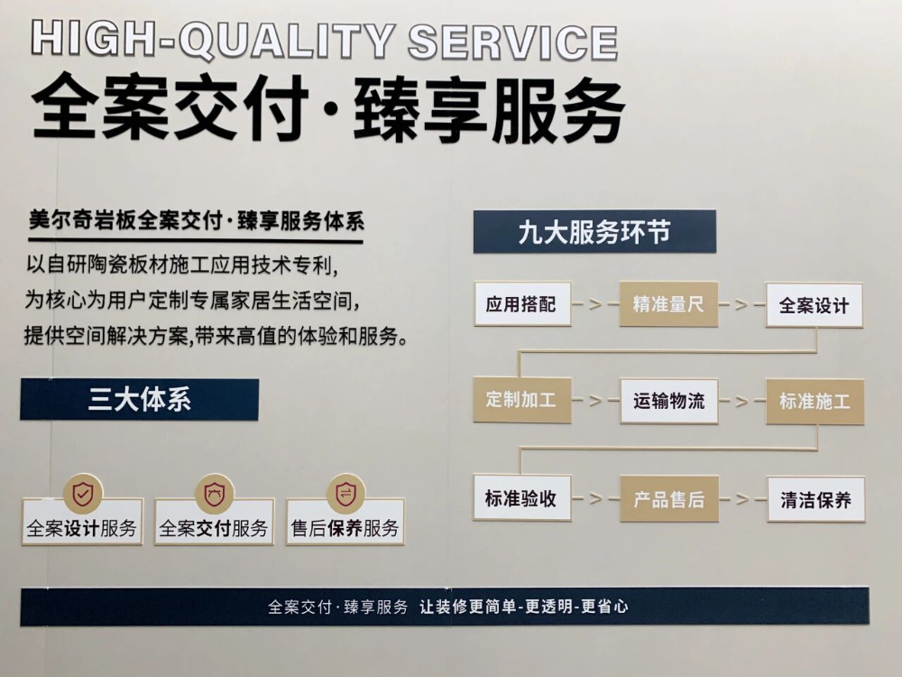 这一体系不仅解决了岩板行业普遍存在的“销售、加工、铺贴”脱节难题,更构建了美尔奇独特的竞争壁垒------让客户选择美尔奇真正成为“无后顾之忧”的明智决策。