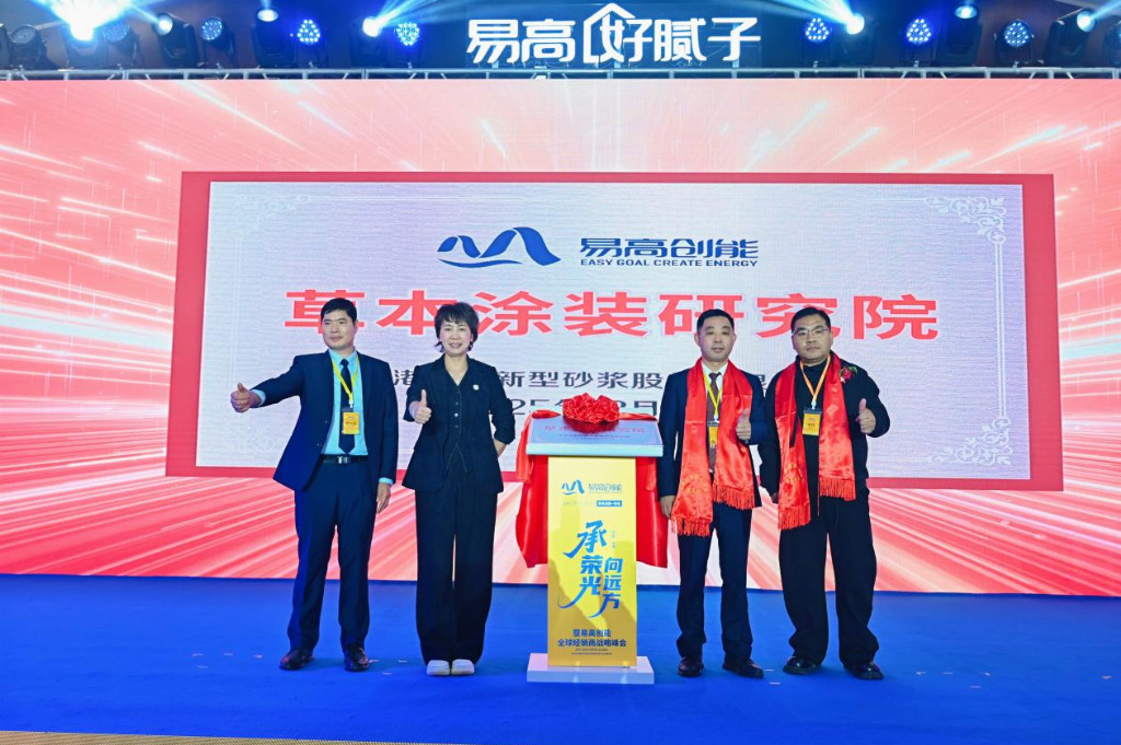 易高创能董事长刘意先生、创始人黄贞迪女士和特邀嘉宾为“草本涂装研究院”正式揭牌,构筑健康家装赛道核心壁垒。易高好腻子始终“以城市更美丽,让家居更健康”为使命,持续聚焦亚临界草本萃取技术的研发与应用。为经销商提供权威的技术背书,强化经销商“健康墙材专家”的形象,破局产品同质化,提高竞争话语权。