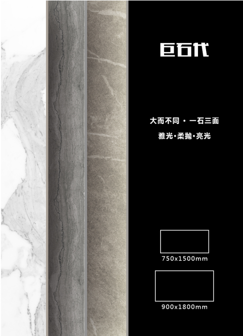 采用新型瓷质装饰面材和瓷质坯体,弥补了天然石材存在的,强度低、性能差、维护保养成本高等问题,使产品更坚硬更耐磨,耐酸碱抗风化,免维护保养。并且无缝衔接,实用性强。此外,“巨石代”凭借“大而不同”的规格优势,将家装市场作为助力的一个方向,让更多的家庭享受到大板带来的舒适体验。
