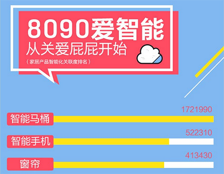 越来越多的黑科技运用到家居设计中,根据最新的大数据显示,8090后尤其钟爱智能产品,而对智能产品的关注中,方便思考人生的智能马桶甚至超过了智能手机的关注度。