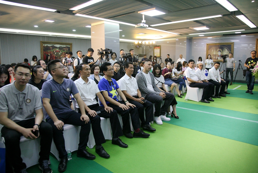 董事、总裁萧礼标,董事、副总裁邓啟棠,国际米兰中国办公室商业总监茅宇静,马特拉齐接受媒体采访