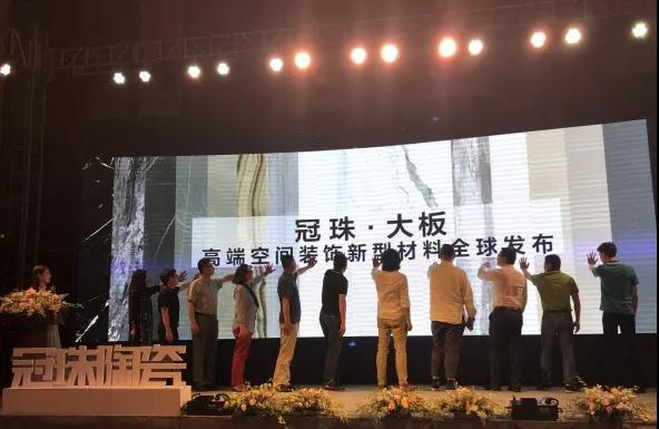经过对大板的解读与设计师们的互动分享,接下来就是见证冠珠陶瓷新品全球发布的时刻。各位设计师与冠珠陶瓷品牌副总经理彭俊泉、市场总监李尧、鞍山冠珠董事长范美金、总经理郑文扬一同上台触动屏幕,开启新品发布仪式。