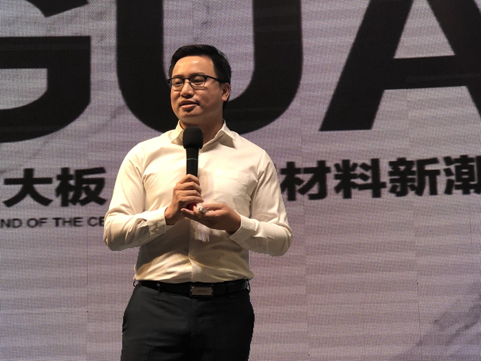 冠珠陶瓷市场总监李尧为我们分享了米兰时尚的趋势,并解读了大板的优势与魅力,他表示大板可以从不同的角度与设计结合,实现更多玩法。