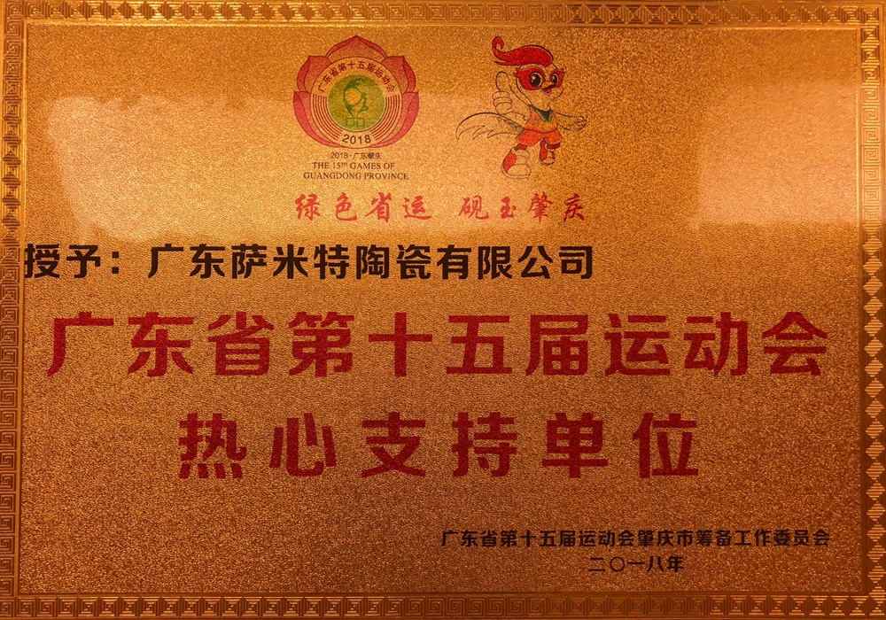 6月21日,萨米特瓷砖,荣获省运会“热心支持单位”荣誉牌匾及称号,这是肇庆市省运会筹委会对于萨米特的肯定。