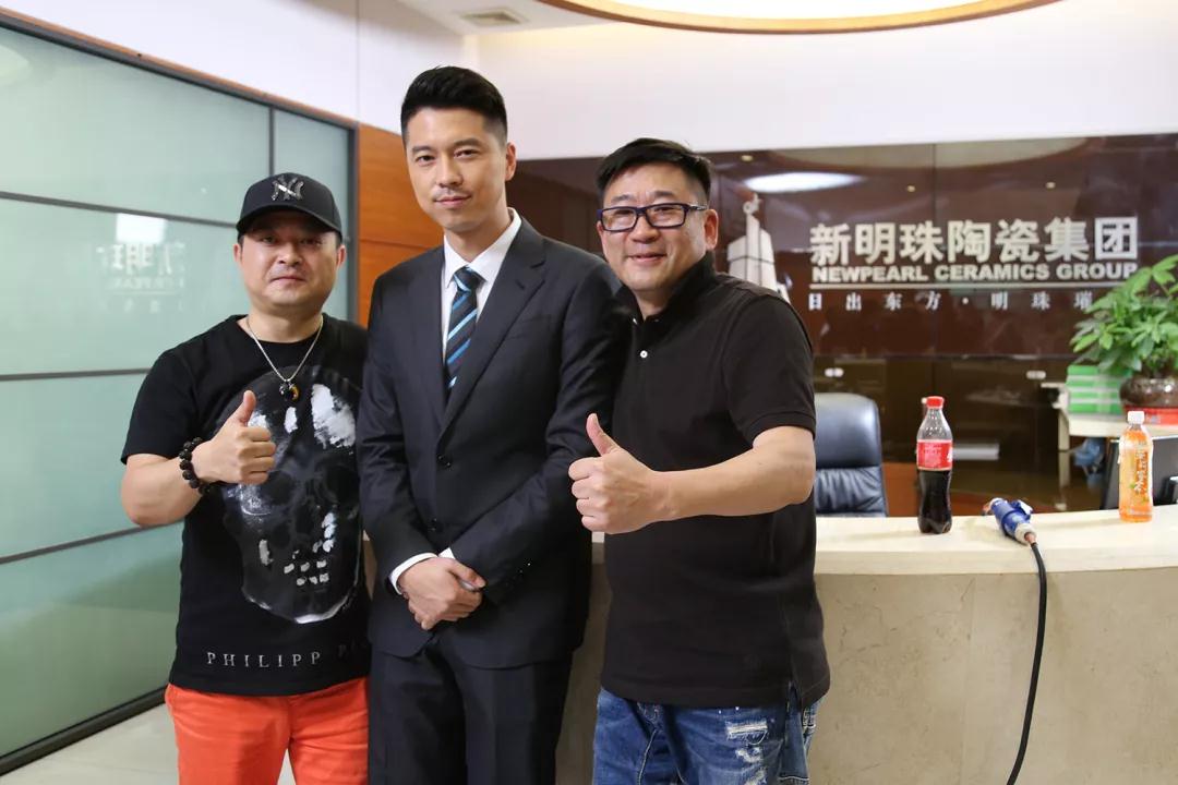 主演王雷、制片人敦淇和导演余丁在新明珠陶瓷集团拍摄现场