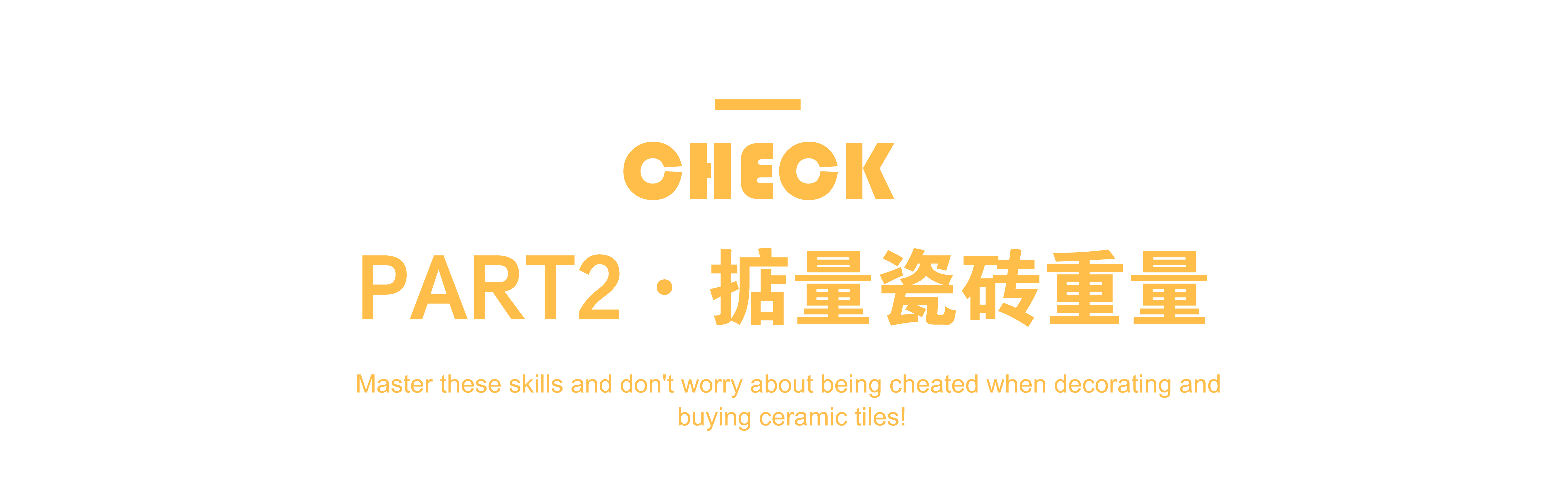 质地好、质量高、密度高的瓷砖手感往往都会相对比较沉,建议大家可以选择相对比较沉的瓷砖。