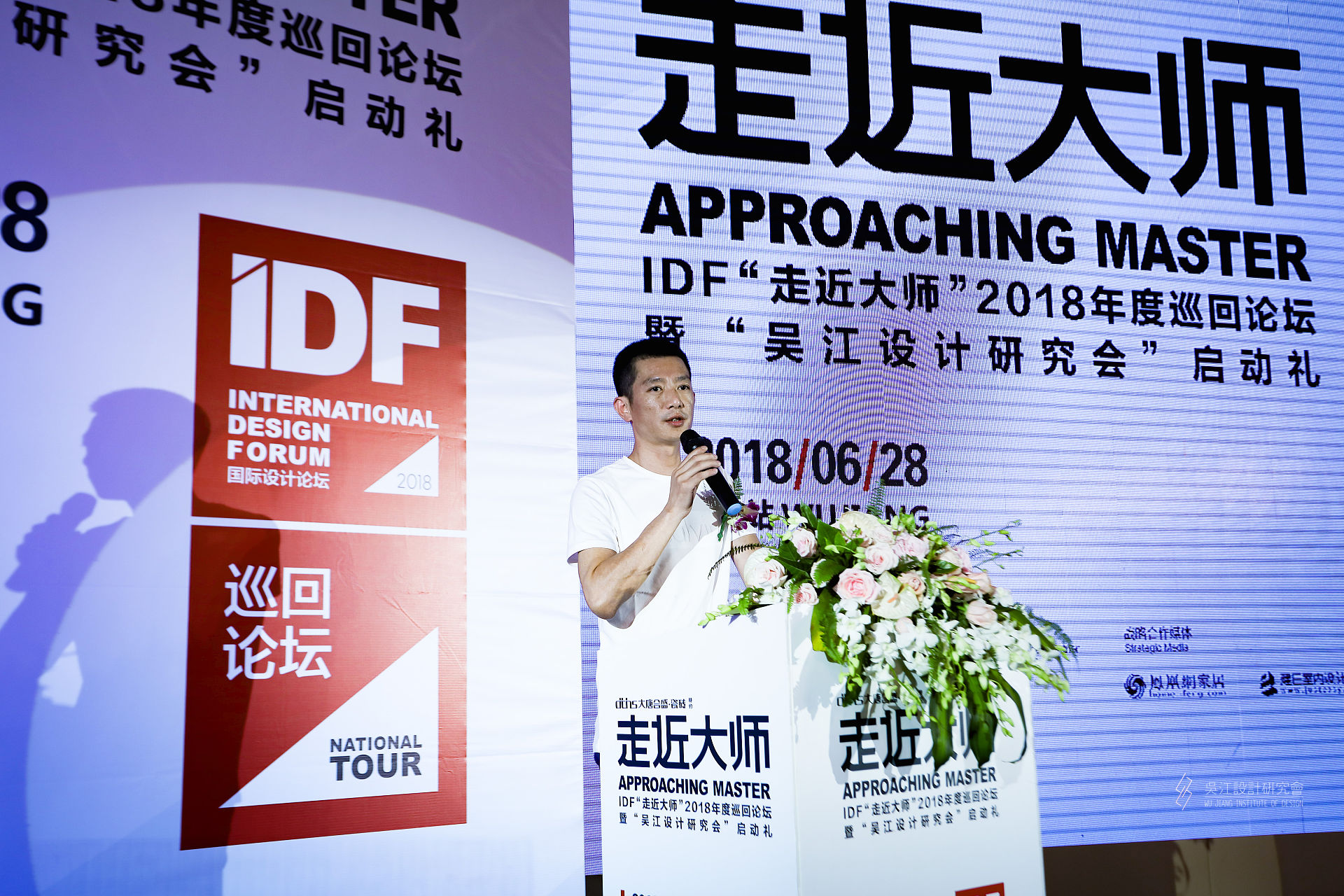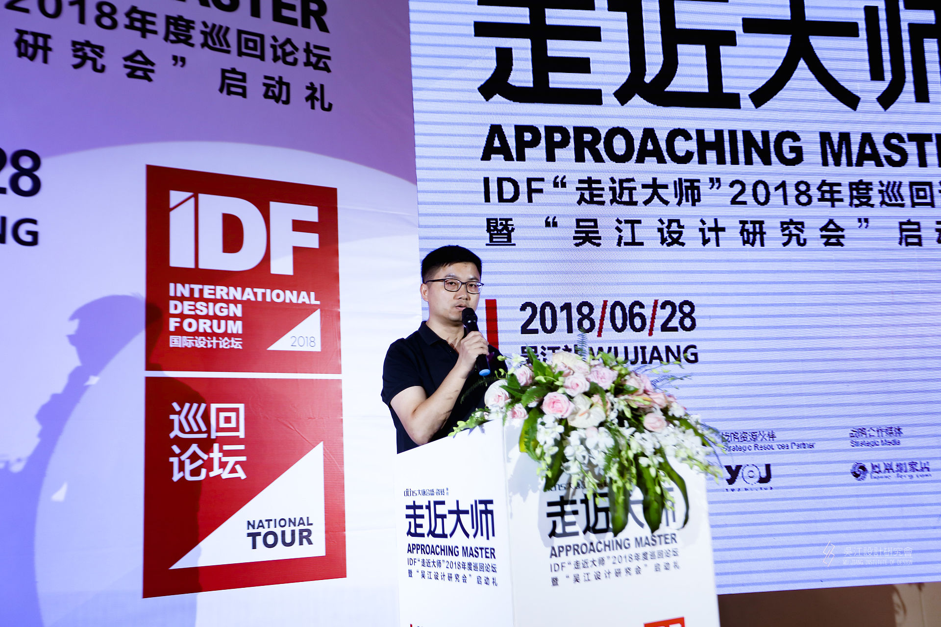 IDF“走近大师”2018年度巡回论坛暨“吴江设计研究会”启动礼于6月28日在苏州吴江东太湖大酒店一楼吴越厅盛大举行。由国际设计论坛(IDF)主办方广州设计周携手IDF战略合作伙伴大唐合盛瓷砖共同举办。