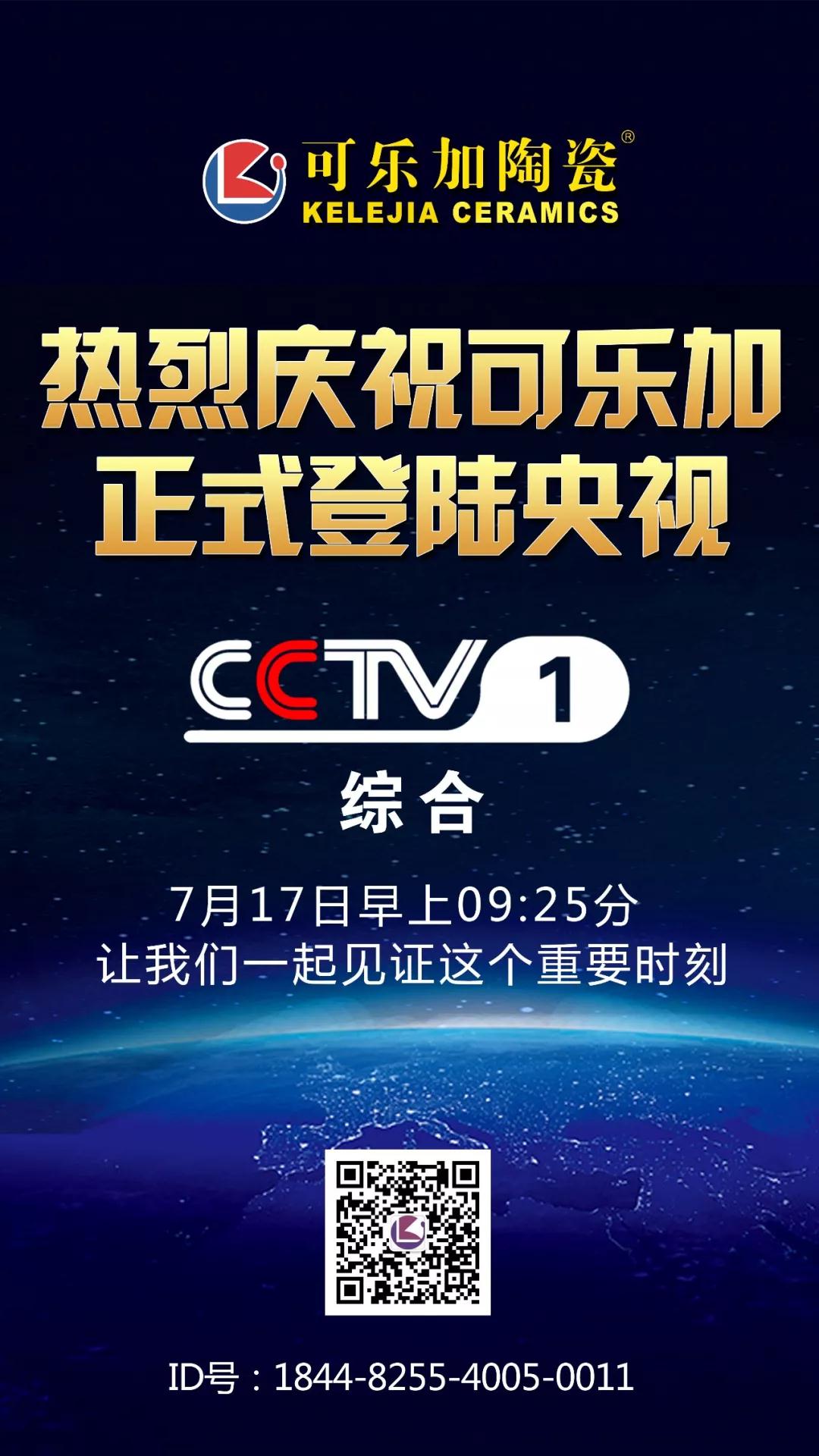 7月17日,可乐加陶瓷宣传片,正式登陆央视综合频道CCTV1。