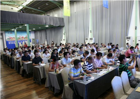 冼淑明总监通过生动的语音,直观的演示给大家上了一节精彩的《陶瓷数码施釉技术,领驭“百变”现代仿古砖》。冼老师通过自身丰富的经验结合目前最先进的设备与技术,通过市场背景、生产过程中的难点的分析,介绍了全数码大板施釉线的特点、技术等,学员们听得津津有味。