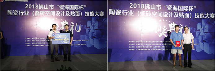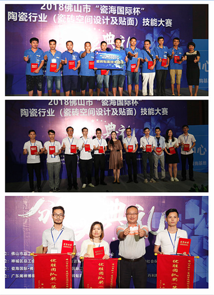 本次颁奖分三类奖项:优胜个人奖、优胜团体奖、网络人气奖。本届瓷砖空间设计类的第一名是来自嘉俊陶瓷的欧春亮,他获得了由佛山总工会颁发的“佛山市职工(瓷砖空间设计)技能竞赛技术状元”和佛山市人力资源和社会保障局颁发的“佛山市技术能手”的称号,并由陈环会长为其颁发了奖座和奖金。而第2-11名也获得了有佛山总工会颁发的“佛山市职工(瓷砖空间设计)技能竞赛技术能手”的称号。