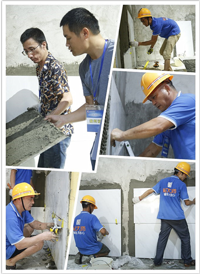 7月31日上午技能大赛瓷砖铺贴类总决赛在瓷海国际贴大师培训中心举行,选手们首先进行理论类考试,理论类考试完毕后选手们分批开始实操考试。有过初赛的经验,选手们似乎都对铺贴实操游刃有余。年纪稍微大些的选手更有铺贴经验,一道道工序十分稳定熟练,而年纪轻轻的选手力气十足,更懂得运用新的工具,各有各的优点,一时难以分出高低。