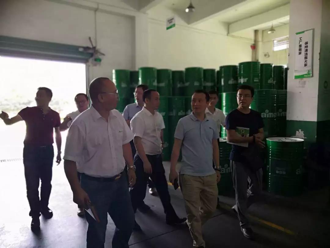 洽谈会后,汪董率队带领佛山陶协秘书处一行参观了安美公司整洁有序的生产工作车间,在检测试验室内,技术人员对润滑油油品的化验和检测原理做了详细的介绍,并进行一些简单可行的现场演示,这让人充分体会到了安美公司对润滑油油品质量的坚守与执着。