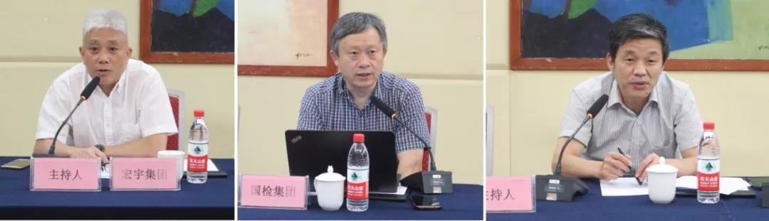 (左)宏宇集团市场总监王勇主持会议,(中)中国建材检验认证集团股份有限公司胡云林高工发言,(右)景德镇陶瓷大学材料学院汪永清教授发言