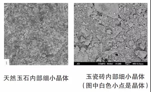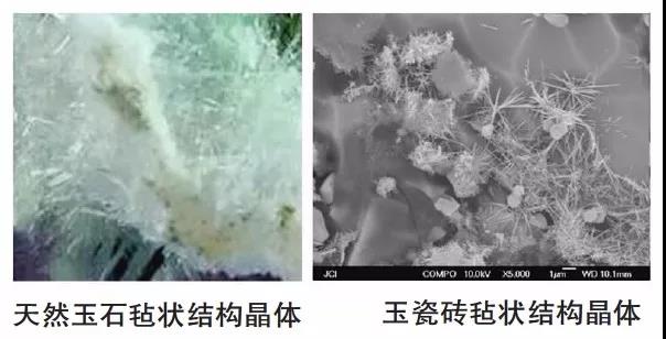 玉瓷砖表面质感及触感像玉石一样温润,是因为它内部还有近似玉石一样的“毡状结构晶体”。